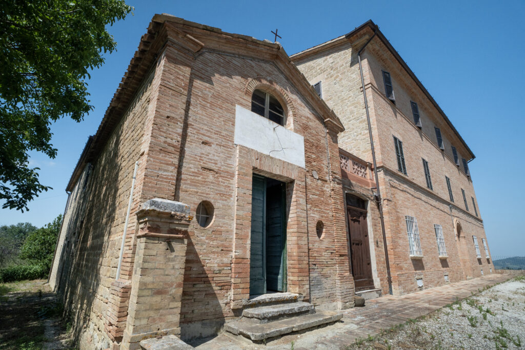 La Chiesa privata di San Filippo Neri, parte integrante della villa della storica famiglia Conti di Mergo, sorge in adiacenza al complesso residenziale.